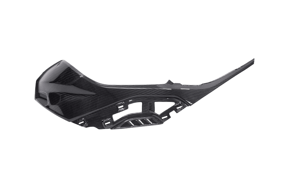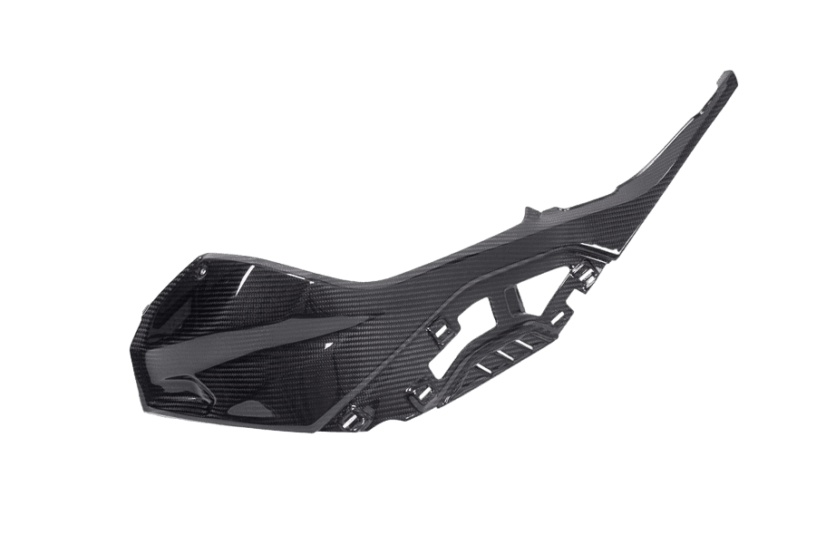 Afin d’obtenir un ensemble harmonieux, les couches de fibres sont insérées et alignées dans le moule par des experts. La partie en carbone s’intègre parfaitement aux formes environnantes de la moto. Plus nos pièces sont installées et combinées, plus le résultat est impressionnant. Pour notre carbone, nous utilisons uniquement du tissu préimprégné spécialement produit à cet effet, qui est également utilisé sous une forme similaire en Formule 1 et dans les voyages spatiaux. Le matériau, soigneusement laminé à la main et durci en plusieurs étapes dans l’autoclave, impressionne non seulement par son aspect unique, mais aussi par ses propriétés techniques uniques. Avec le même volume, il a une rigidité spécifique trois fois supérieure à celle de l’acier et en même temps, en raison de sa densité particulièrement faible, seulement une fraction de son poids. Afin de protéger de manière optimale ce matériau de haute qualité contre toutes sortes d’influences environnementales, nous sommes le seul fabricant de carbone au monde à utiliser un revêtement plastique spécialement développé sur toutes les surfaces. En combinaison avec notre vernis transparent. Cela garantit un effet de profondeur auparavant inaccessible et unique, qui permet à la haute qualité du matériau de prendre tout son sens.