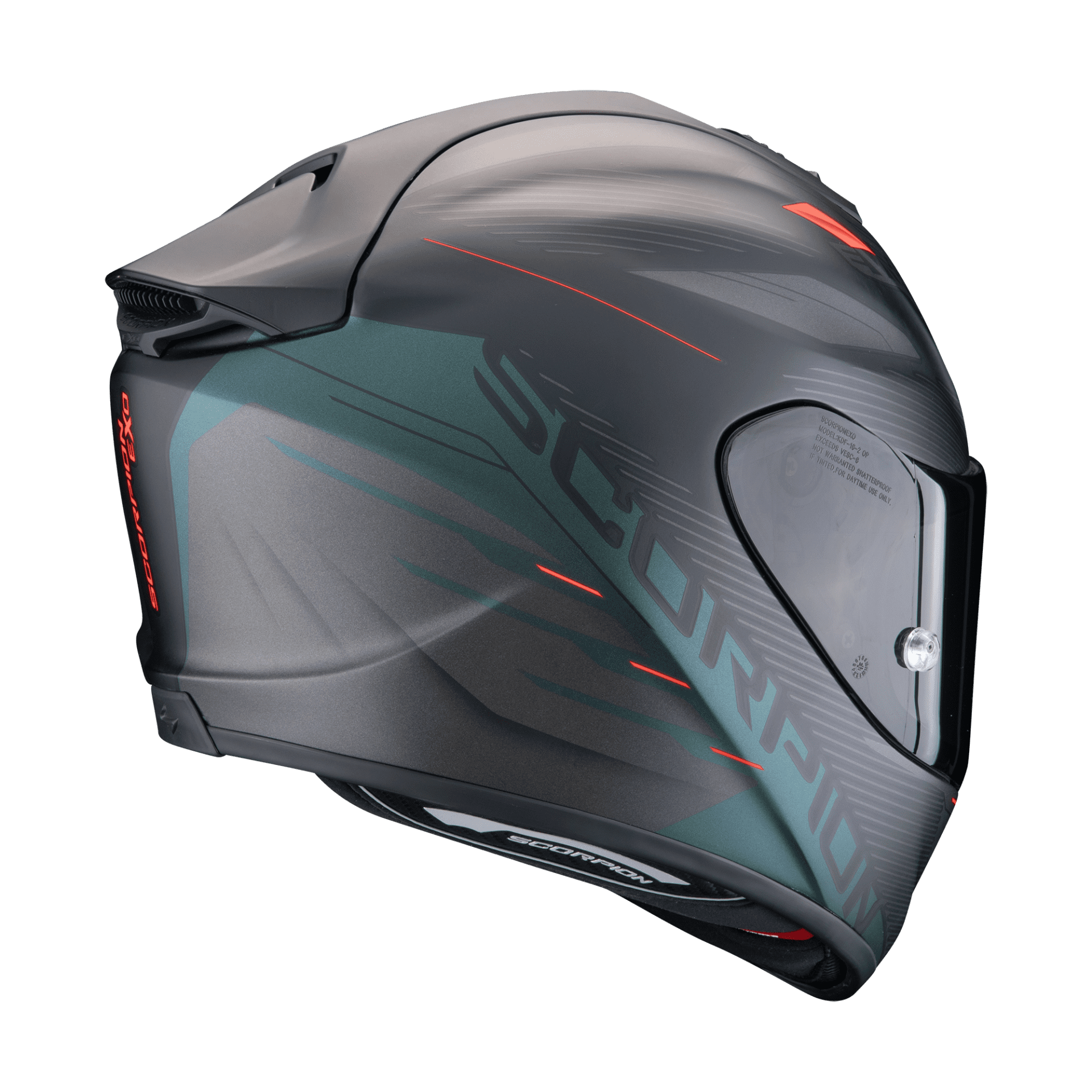 • Changement d’écran Ellip-Tec™ II améliorant la facilité et la rapidité de changement d’écran propre à Scorpion. Conçu en soufflerie pour limiter au maximum les bruits aérodynamiques à très haute vitesse, l’écran est totalement hermétique et silencieux. Il est aussi plus résistant en cas de chute.