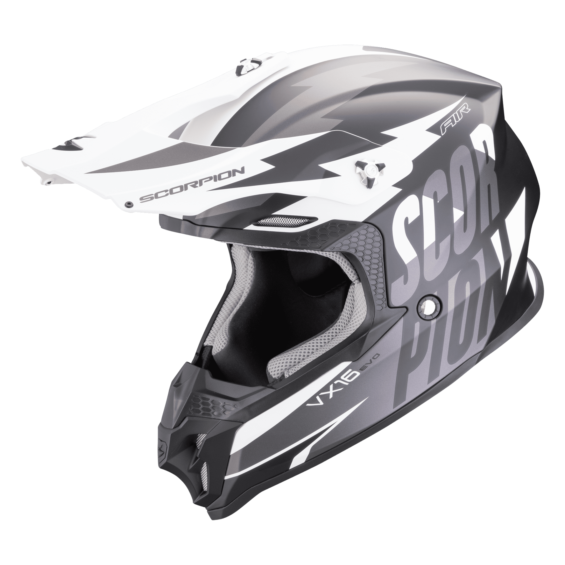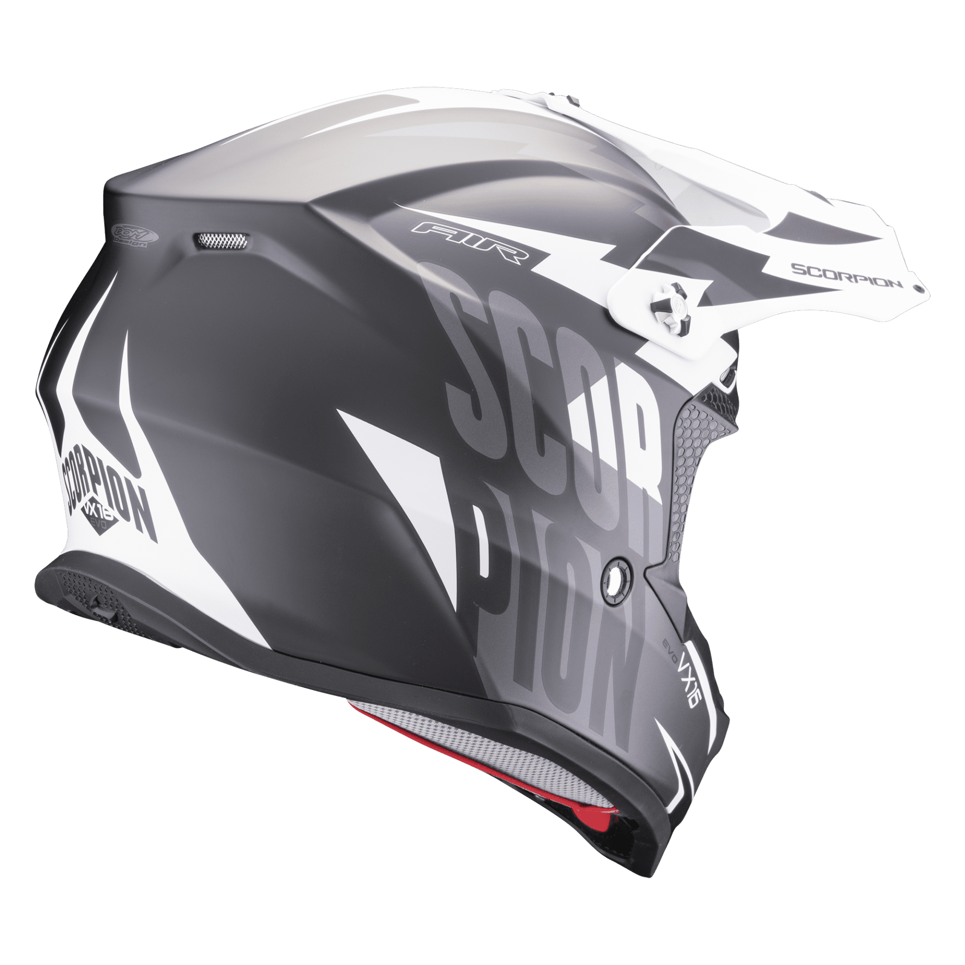 Le VX-16 EVO Air a hérité des grandes caractéristiques de la série VX-15 telles que l’AirFit, les grands oculaires, l’évent amovible et l’extension de la visière, tout en offrant un meilleur ajustement grâce aux coussinets de joues 3D découpés au laser, un plus grand espace pour le menton afin de respirer plus confortablement, et un poids plus léger grâce à la coque thermoplastique avancée de ScorpionEXO.