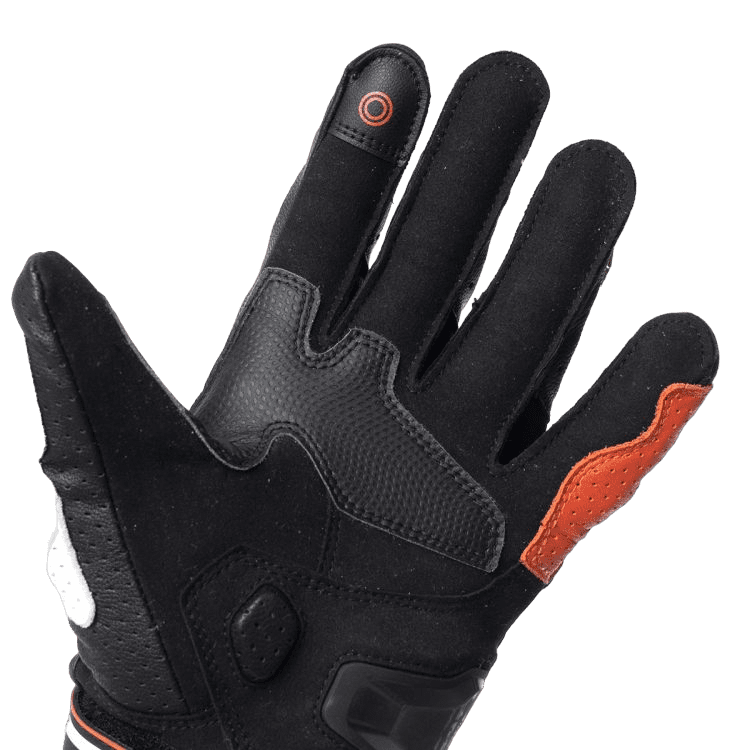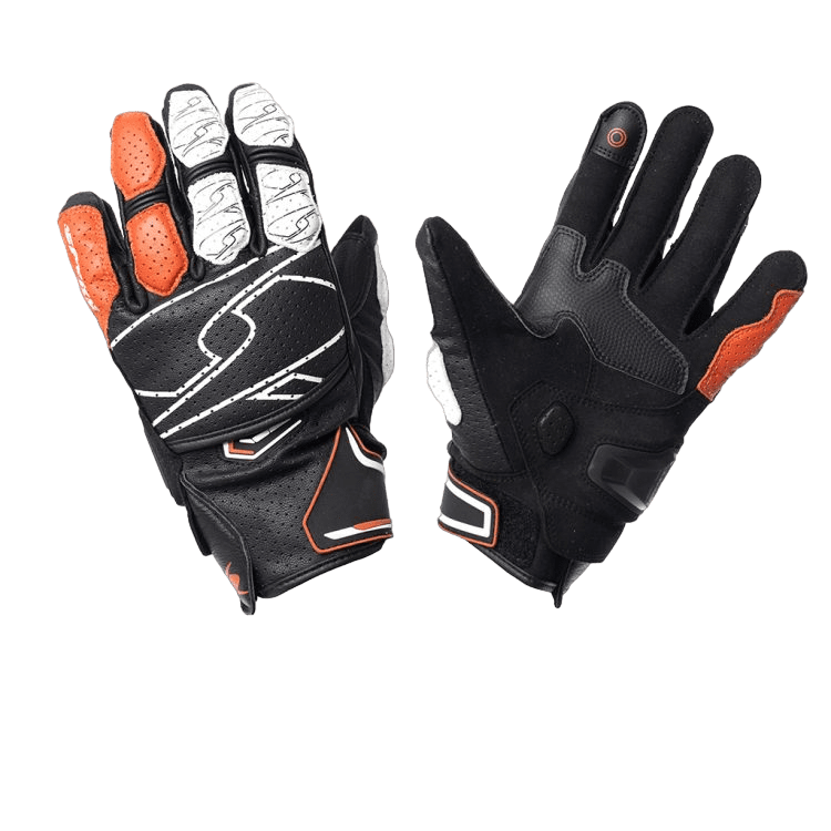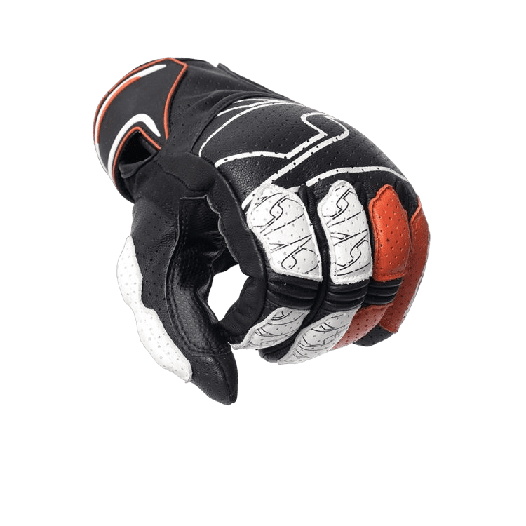 • Gants racing courts en cuir avec perforations pour la ventilation de l’air.